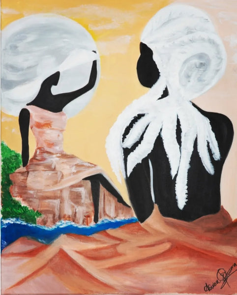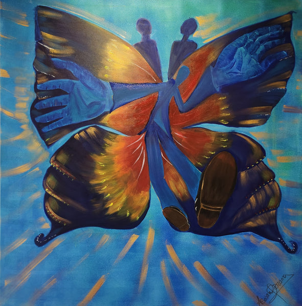 Avec des matériaux mixte, la technique acrylique et collage, est une rencontre fugace entre l'art et la mode, où les lignes de l'un se marient aux textures de l'autre, tissant des liens indissolubles sur la toile.