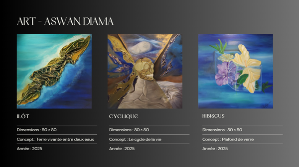 « Chaque toile est un fragment d’âme et d’émotion. Si l’une d’elles a touché la vôtre, je serai honorée d’en discuter avec vous. »